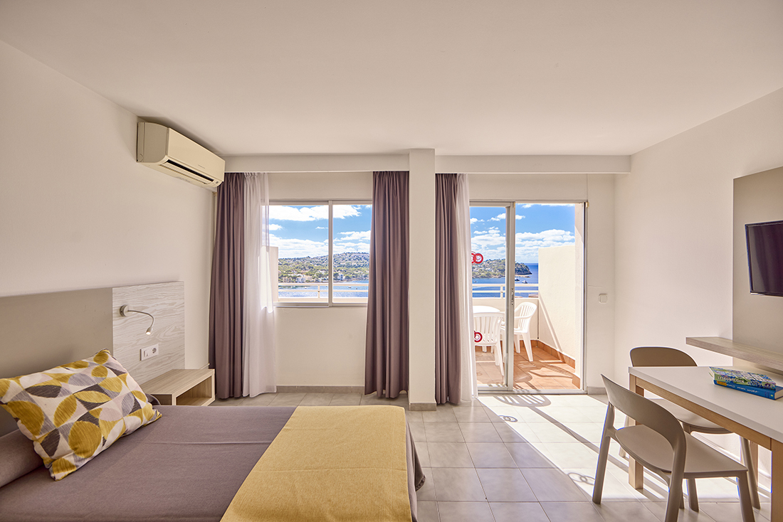 Imagina abrir la ventana y encontrarte con la inmensidad del mar. Nuestros estudios ofrecen no solo comodidad y funcionalidad, sino también espectaculares vistas al Mediterráneo desde su balcón o terraza privada. Espacios amplios, totalmente equipados, ideales para disfrutar de una escapada inolvidable en pareja o en solitario.